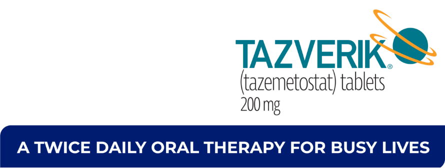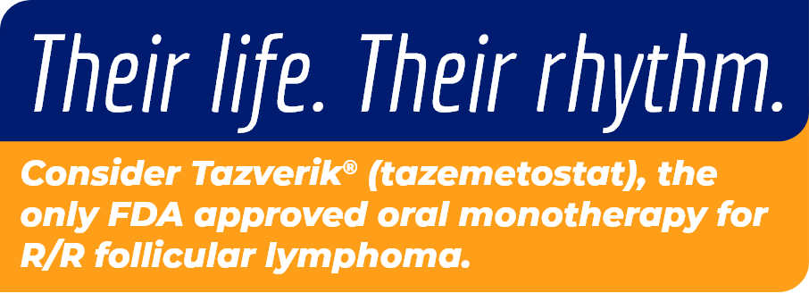 References: 1. TAZVERIK (tazemetostat) Prescribing Information. Cambridge, MA: Epizyme, Inc., August 2024. 2. Referenced with permission from the NCCN Clinical Practice Guidelines in Oncology (NCCN Guidelines®) for B-Cell Lymphomas V.2.2025. © National Comprehensive Cancer Network, Inc. 2025. All rights reserved. Accessed February 13, 2025. To view the most recent and complete version of the guideline, go online to NCCN.org. NCCN makes no warranties of any kind whatsoever regarding their content, use or application and disclaims any responsibility for their application or use in any way. 3. FDA granted accelerated approval to tazemetostat for follicular lymphoma. News release. Food and Drug Administration. June 18, 2020. Accessed February 17, 2025.